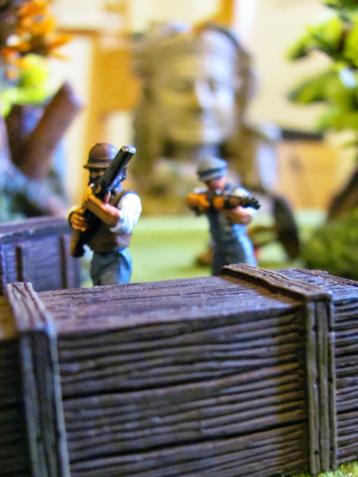 Figures were all painted by the inimitable Matt Slade. The trees and building are various aquarium decorations.